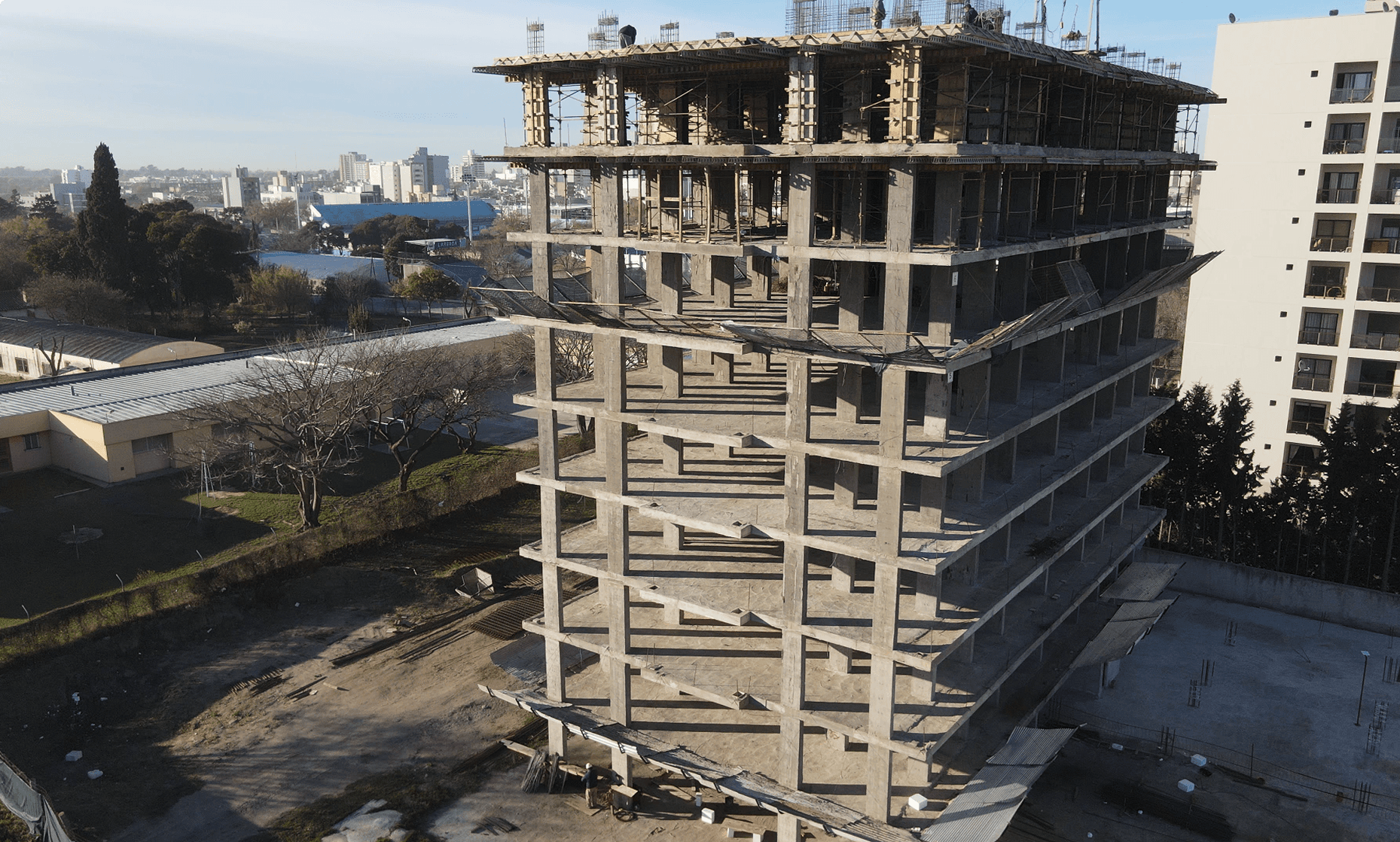 Torre residencial ubicada en Bv. Río Grande 502 con planta baja de doble altura y 13 pisos sobre ella (15 niveles totales), de alrededor de 50 m de altura